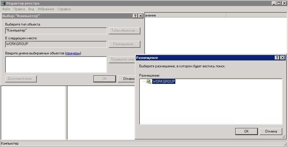 В поле “Введите имя объекта“ введите имя компьютера, к реестру которого требуется подключиться, и нажмите кнопку “Проверить имена“.