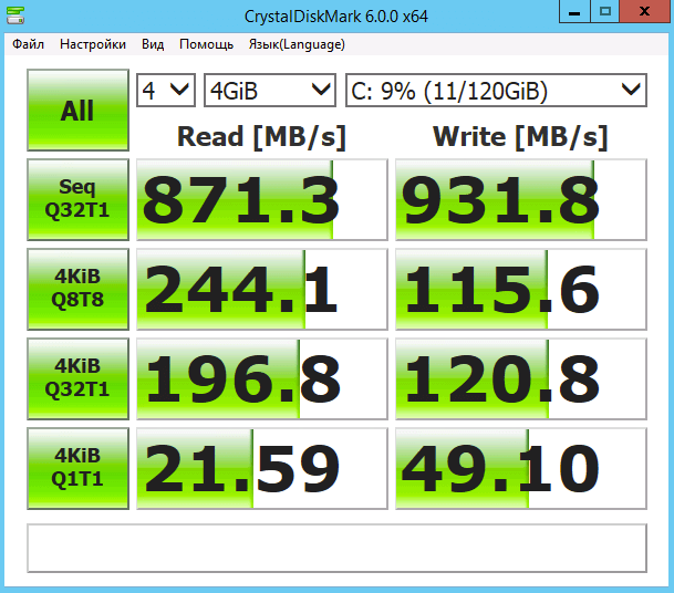 Измерение IOPS с помощью CrystalDiskMark в Windows