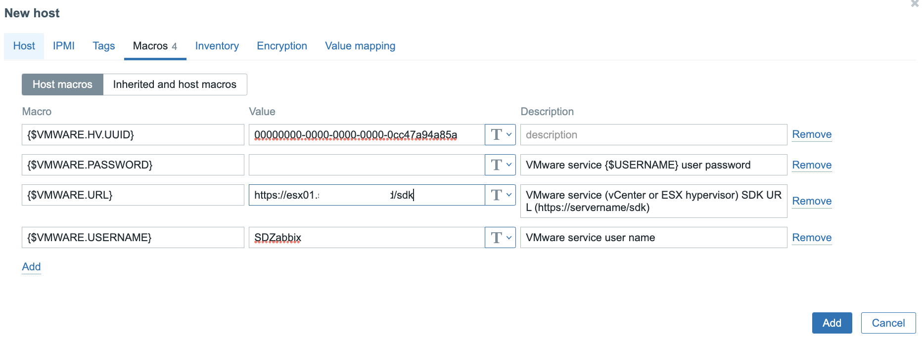 - {$VMWARE.URL} - URL на SDK хоста;